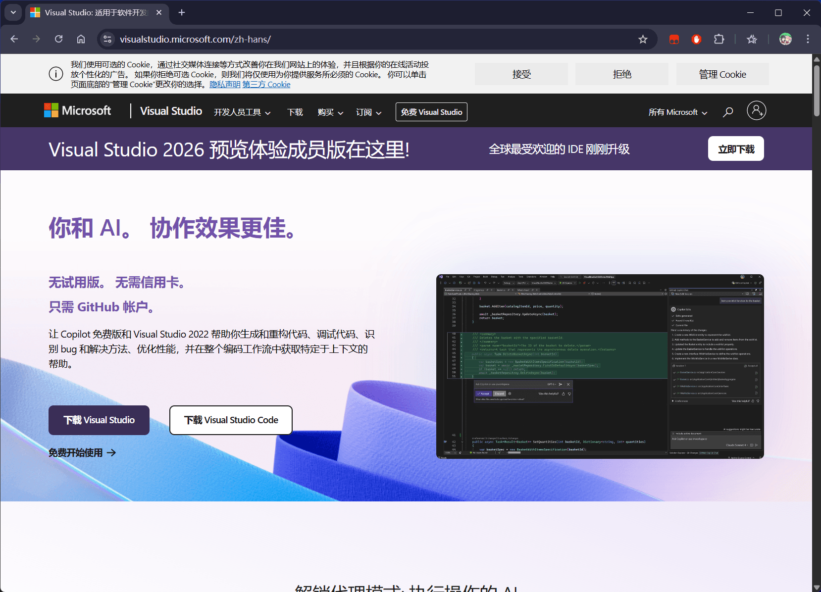 登陆 VS 官网 https://visualstudio.com,点击 下载 Visual Studio。