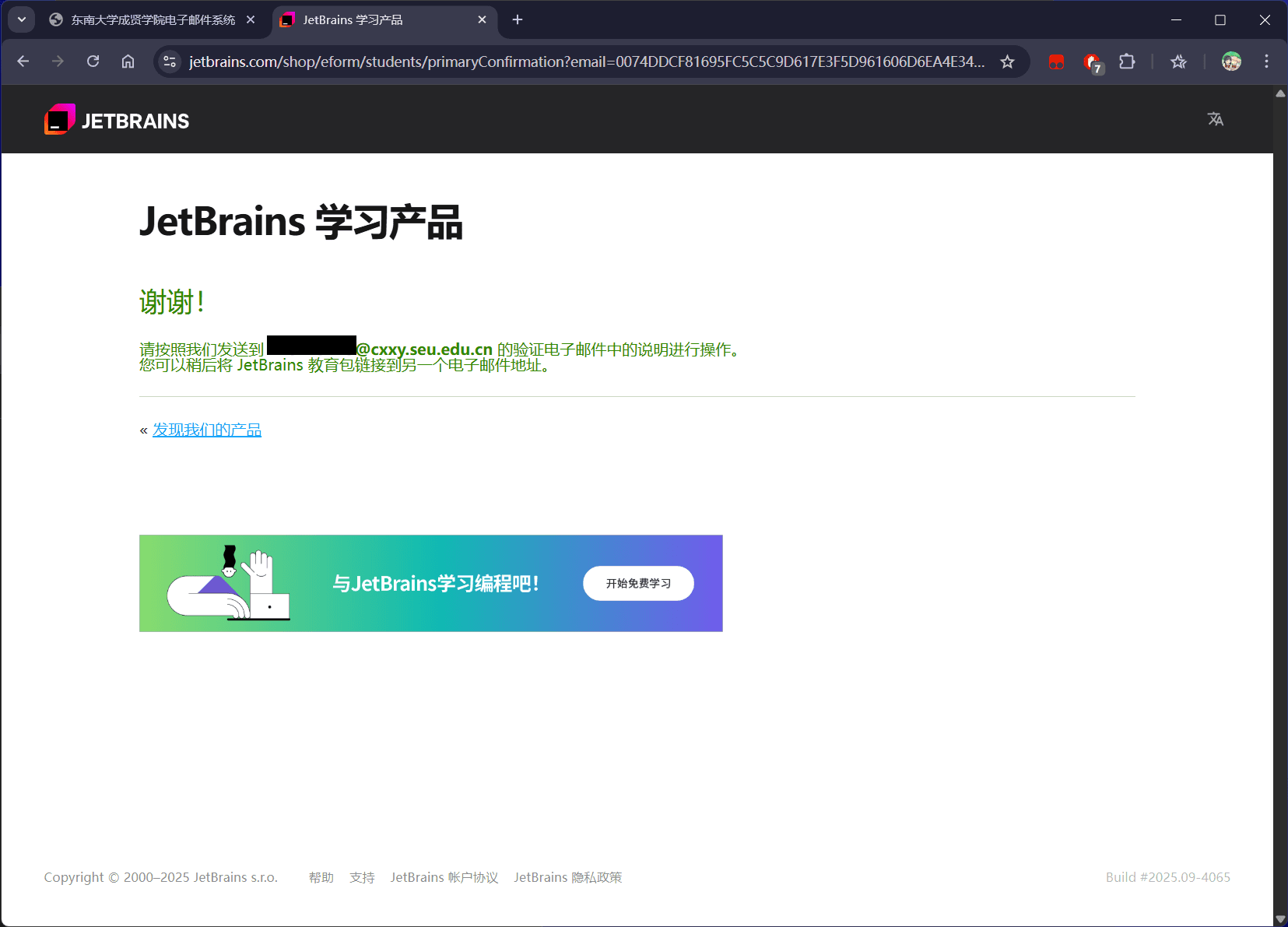 注册 JetBrains 账号(邮箱可以使用个人邮箱),看到下面页面即代表完成