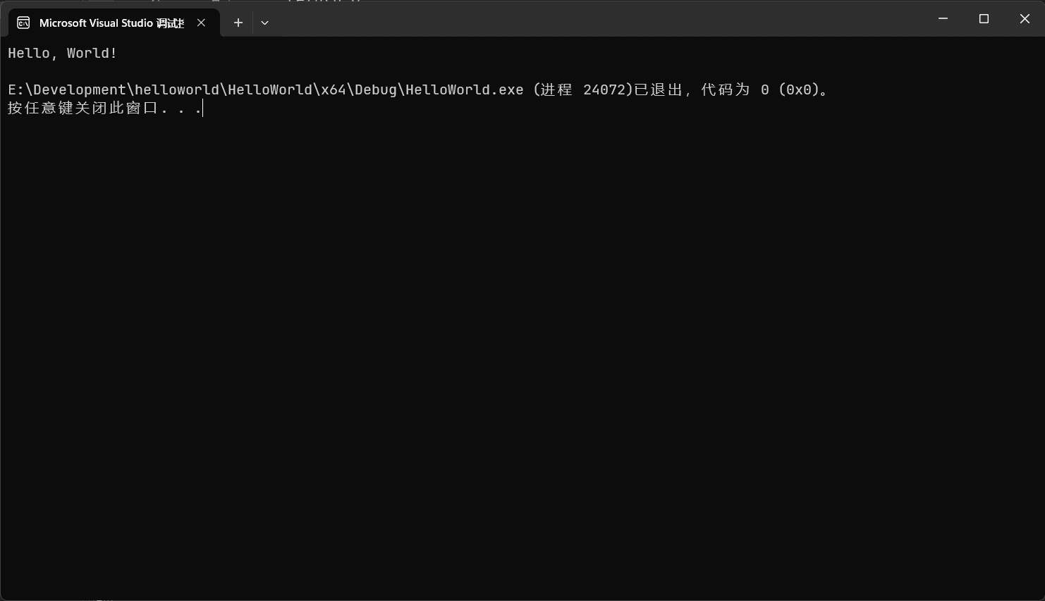 在上方找到 开始执行(不调试) 按钮,或按键盘上的 Ctrl + F5 运行程序。