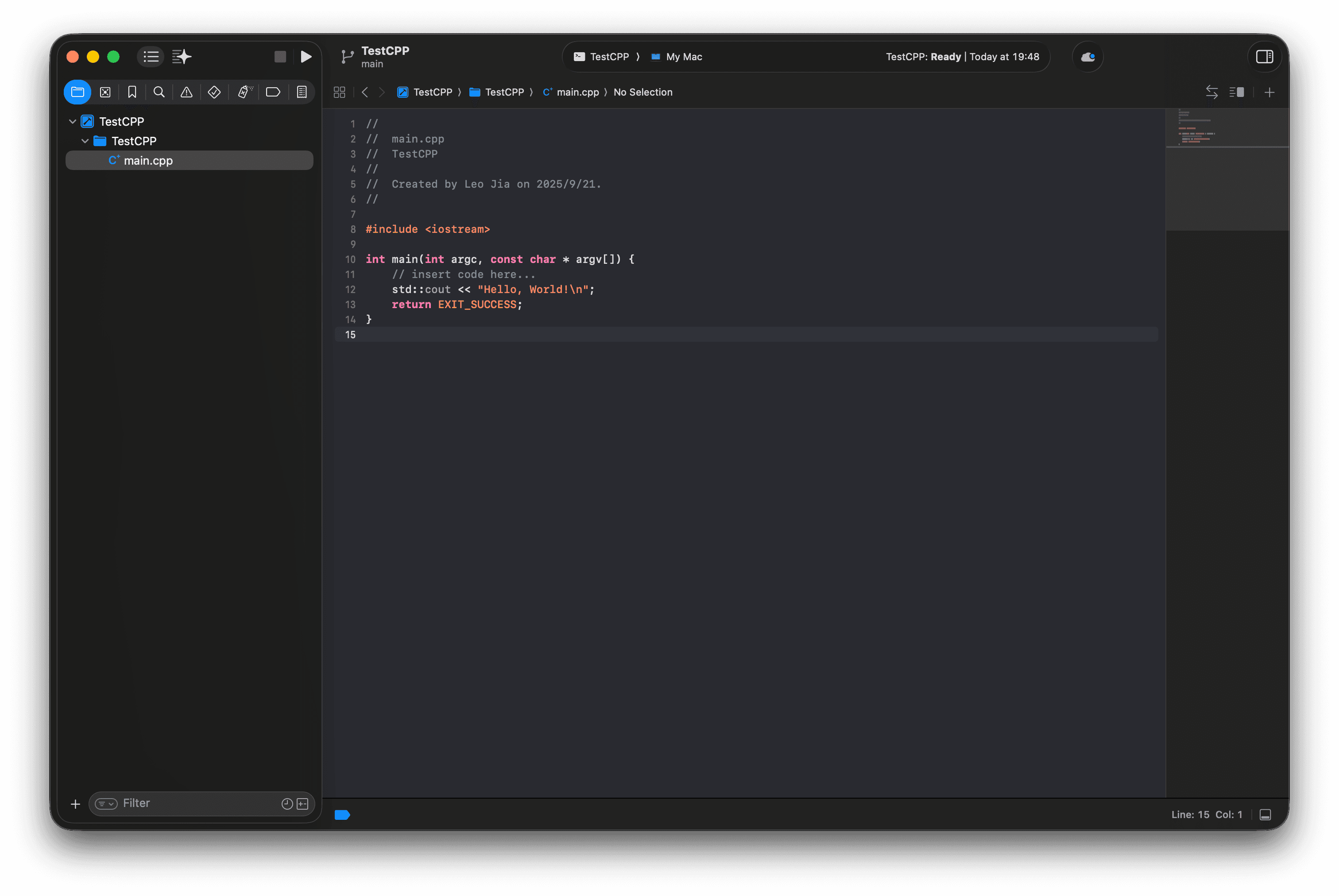 tasks.json文件,回到test.cpp,编写你的 C++ 代码。